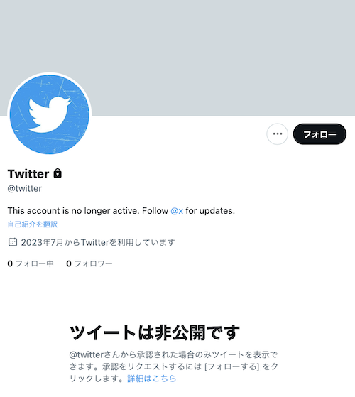 Twitterの公式アカウント。アカウントが@twitterから@Xに変更へ。