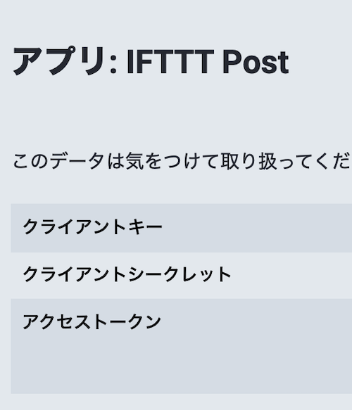 ・「アクセストークン」を、このあとのIFTTT側で使うことになる。
