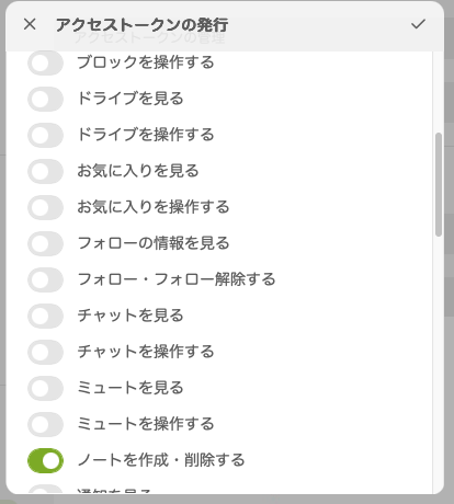 ・好きな名前を入れる(必須)。「ノートを作成・削除する」をチェック。2つの情報を入れたら、右上のチェックの部分をクリックする。確認コードが表示されるので何処かに書き留めておく(コピーする)。この確認コードは、後では見ることはできない。記録し忘れたら、作り直す。